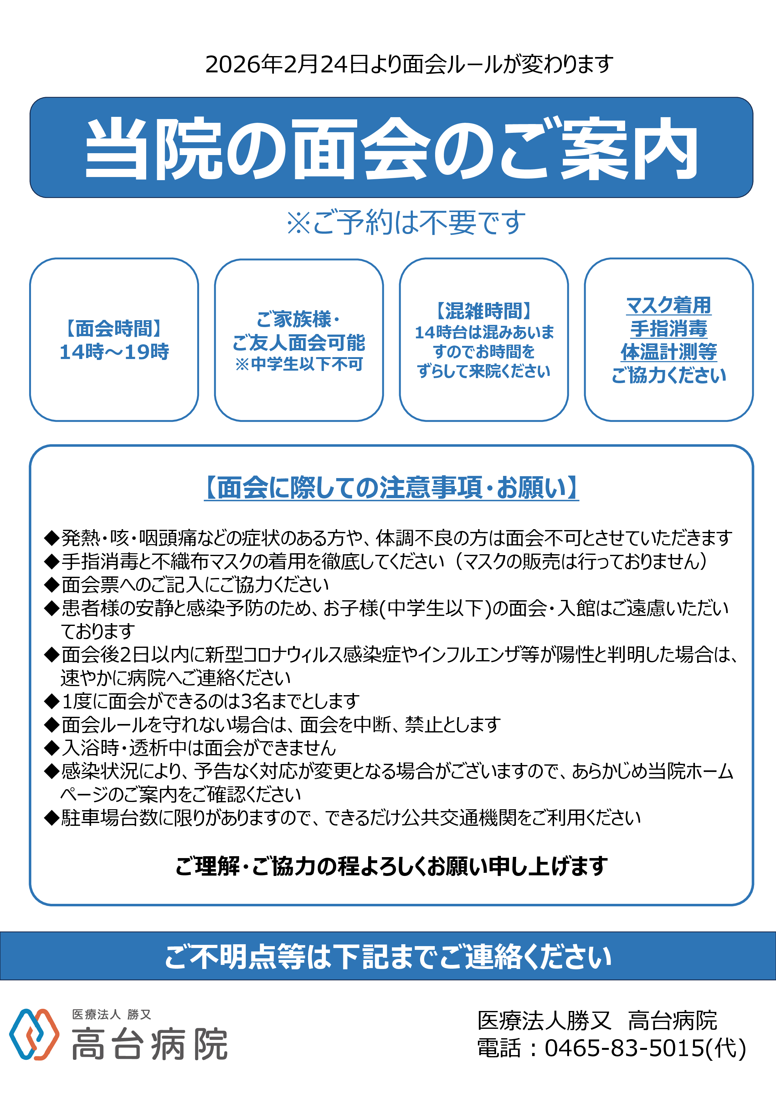 面会時間の変更及び注意事項について(2/24~)